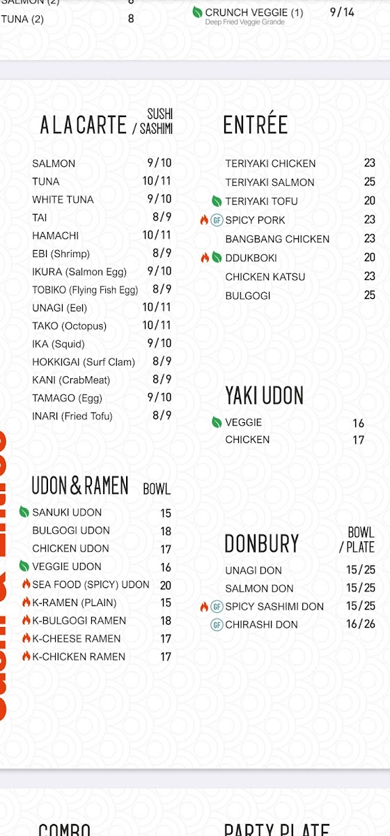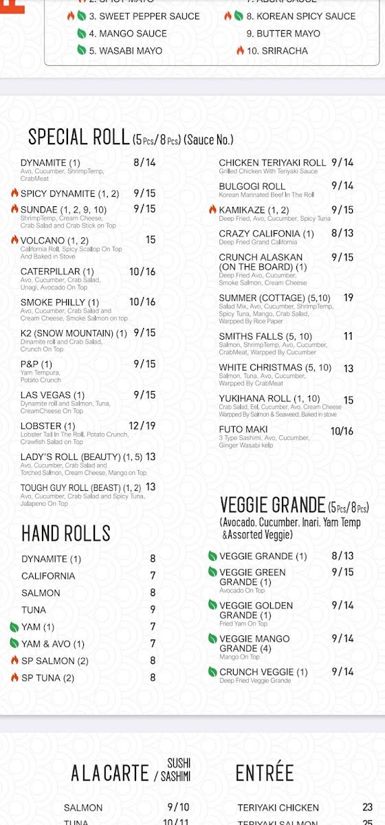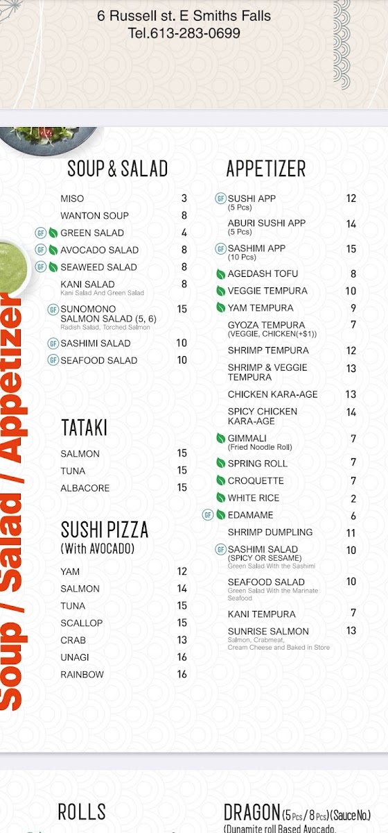 Yukihana Sushi offers a diverse and flavorful menu, perfect for those craving authentic Japanese dishes. Their Tataki options, including Tuna, Salmon, and Albacore, are a great way to start your meal, while appetizers like the Sushi App, Aburi Sushi App, and Agedash Tofu are equally tempting. For a refreshing drink, the restaurant serves various Pop/Soda/Juice choices, including Coke and Sprite, along with a selection of Teas like Green Tea and Ginger Tea. Their extensive beverage menu also includes Asahi and Sapporo beers, as well as Soju and Makgeolli for those looking for a Korean touch, and a wide range of Sake options such as Nigori and Mio Sparkling Sake. For the main course, diners can enjoy Teriyaki Chicken, Teriyaki Salmon, or even Teriyaki Tofu for a satisfying meal. If you're in the mood for noodles, the Sanuki Udon and Bulgogi Udon are delicious choices, along with seafood-focused Spicy Udon. Their Donbury options like Unagi Don and Salmon Don are a flavorful choice, while the Combo plates, including Maki Combo A and Aburi Sushi Combo, are great for those seeking variety. Larger groups can enjoy the Maki Plate Small, Maki Plate Large, or the combination of Sushi & Maki Plates. With a wide selection of dishes and drinks, Yukihana Sushi truly caters to a variety of tastes and preferences, making it an excellent dining destination in Smiths Falls.